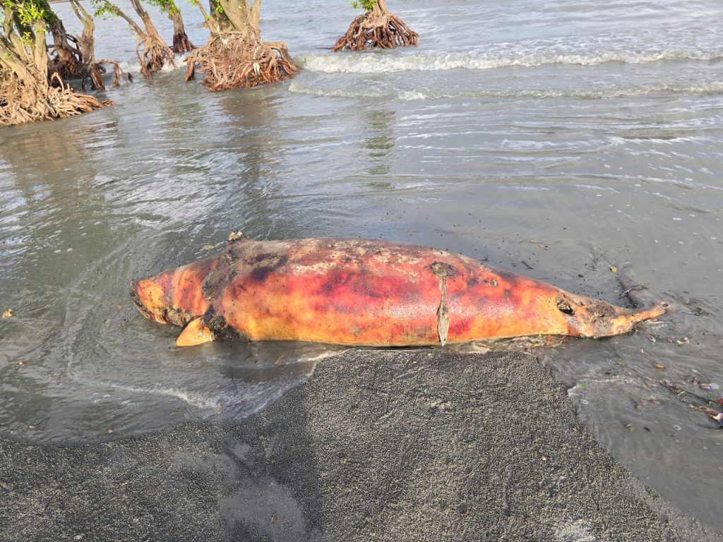 স্থানীয় জেলে মাহমুদ হাসান জানান, দুই দিন আগে মৃত ডলফিনটি জোয়ারের পানিতে ভেসে এসে চরে আটকে গেছে। তার ধারনা বালিতে আটকে এটির মৃত্যু হয়েছে।