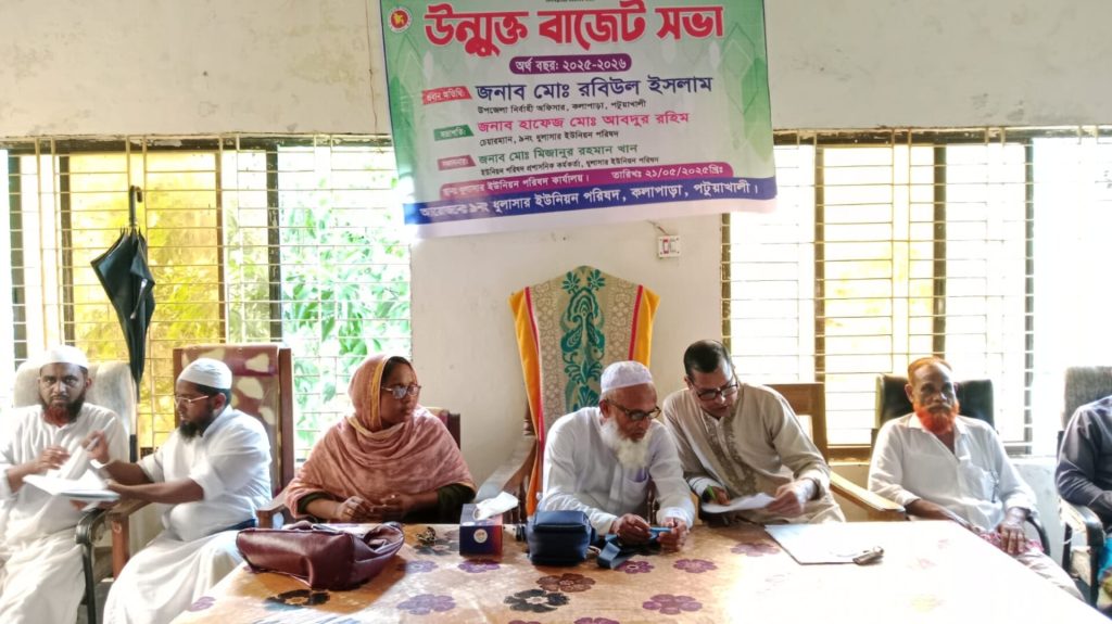 পটুয়াখালীর কলাপাড়া উপজেলার ৯নং ধুলাসার ইউনিয়ন পরিষদের ২০২৫-২০২৬ খ্রি. অর্থ বছরের উন্মুক্ত বাজেট সভা অনুষ্ঠিত হয়েছে।