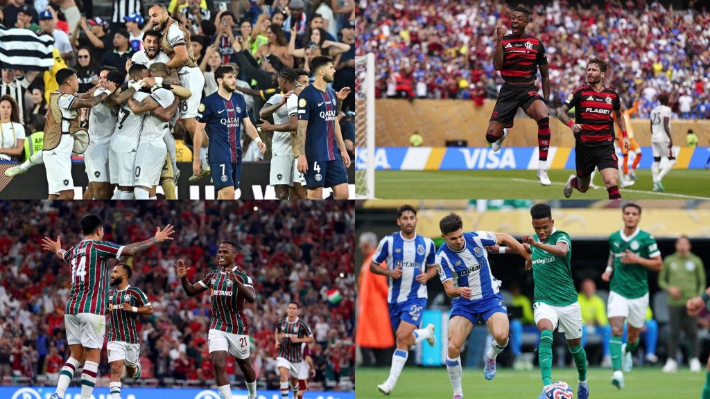 ক্লাব বিশ্বকাপে নিজ নিজ গ্রুপে পয়েন্ট টেবিলের শীর্ষে আছে ব্রাজিলের চার ক্লাব বোতাফাগো (ওপরে বাঁয়ে, ফ্লামেঙ্গো (ওপরে ডানে), পালমেইরাস (নিচে ডানে) ও ফ্লুমিনেন্স (নিচে বাঁয়ে)। ছবি: সংগৃহীত