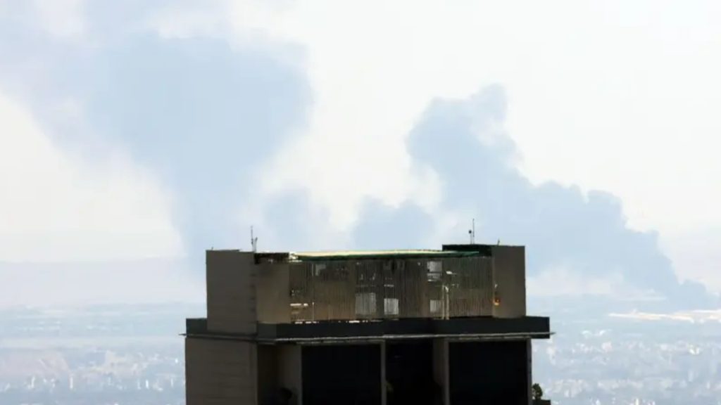 বিস্ফোরণের পরপরই মধ্য তেহরানে ধোঁয়া উড়তে দেখা যায়। ছবি: সংগৃহীত