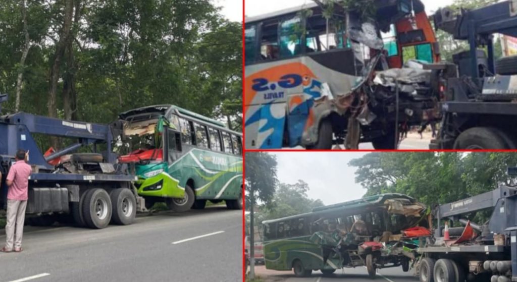 ঢাকা খুলনা মহাসড়কে চতুর্মুখী সংঘর্ষে হাইওয়ে পুলিশ সহ নিহত- ২ আহত ১৫।