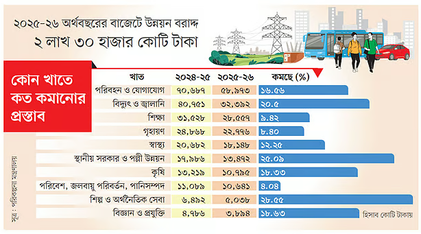দেশে উন্নয়ন প্রকল্প নিতে সরকার যে ব্যয় করে, তা আগামী অর্থবছরে ৩৫ হাজার কোটি টাকা কমছে। প্রায় সব খাতেই বরাদ্দ কমছে। এর মধ্যে রয়েছে শিক্ষা...