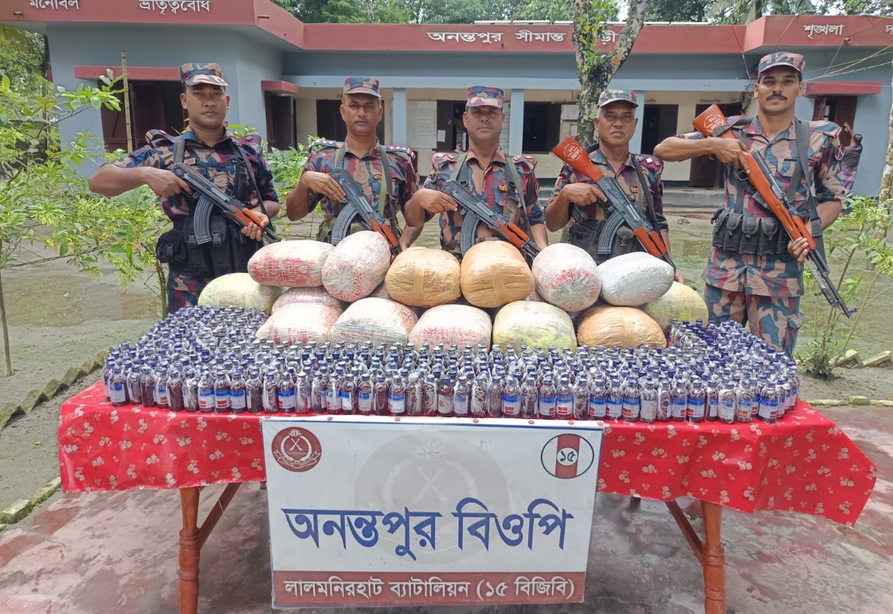 লালমনিরহাটে বিজিবি কর্তৃক গাঁজা, ইস্কাফ সিরাপ ও ফেন্সিডিল জব্দ।